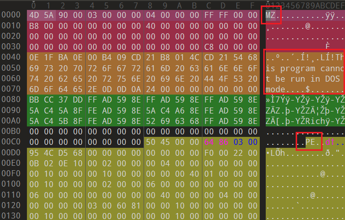 打开010 Editor程序随机打开一个exe文件就可以看到PE文件的结构信息: