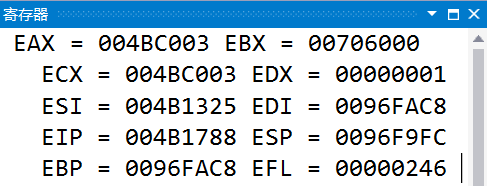 接着打开调试-窗口-寄存器窗口,观察寄存器的动态: