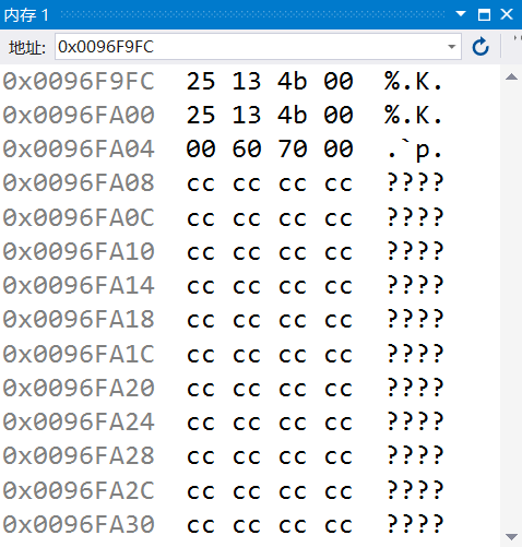 第八步:提升堆栈的内容初始化为0CCCCCCCCh,rep的作用是重复执行stos dword ptr es:[edi]指令,将eax的值赋值给edi所指向的内存地址里的值,并且每执行一次edi都会增加4;