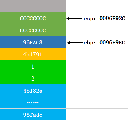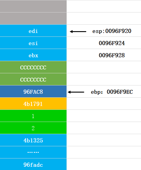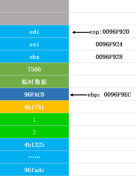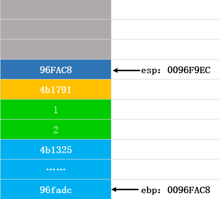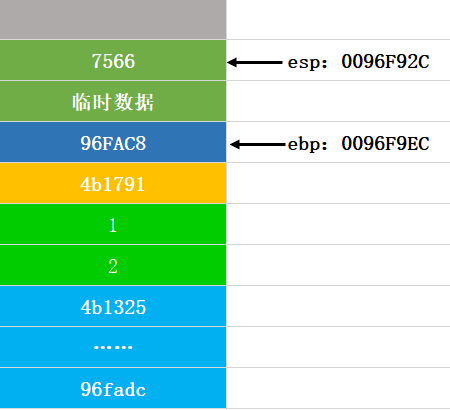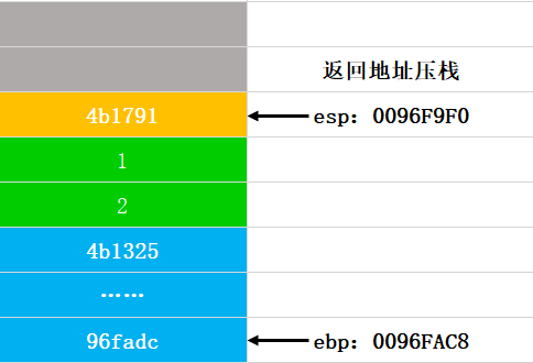 第十四步:将ebp弹出,还原ebp的值,这个图和返回地址压栈的图是一样的: