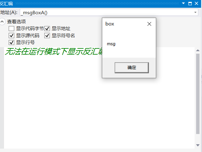 MessageBoxA(0, "msg", "box", 0);