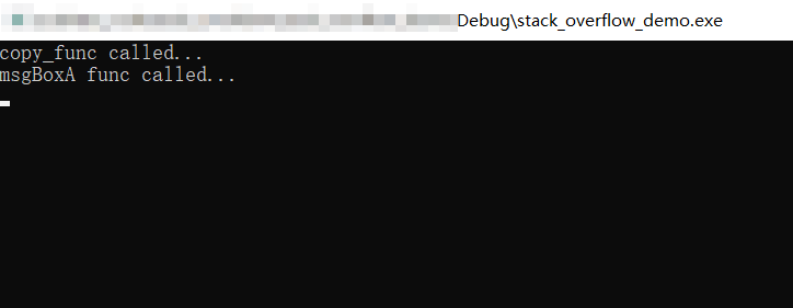 总结:这段代码就是调用memcpy函数复制数据时将msgBoxA函数的地址覆盖了copy_func函数的返回地址,导致copy_func函数执行完返回时跳转到了msgBoxA函数处执行;