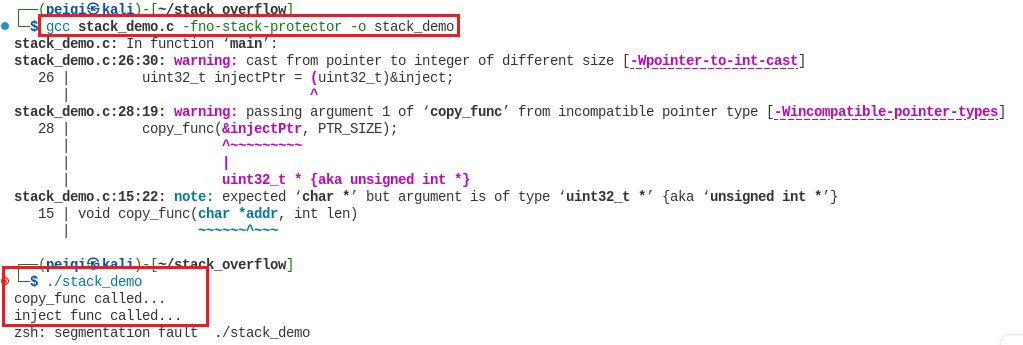 gcc stack_demo.c -fno-stack-protector -o stack_demo